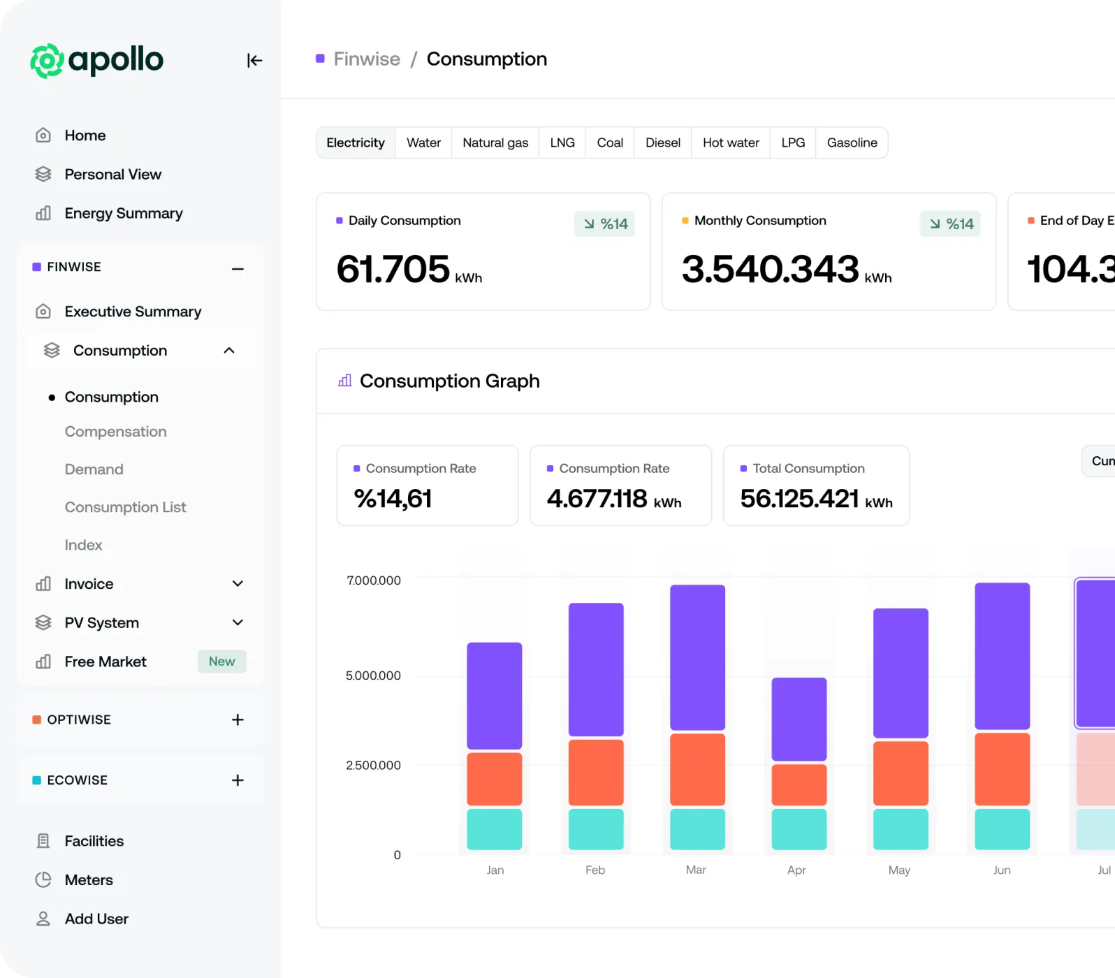 Apollo Finwise helps organizations understand where energy costs come from, why they change, and how to optimize them.