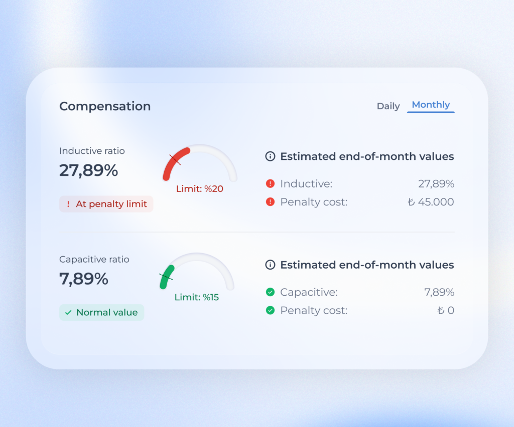 These values taken from the meter are compared with the previous day’s values and the reactive energy status is monitored in this way. Let’s make this more understandable with an example: