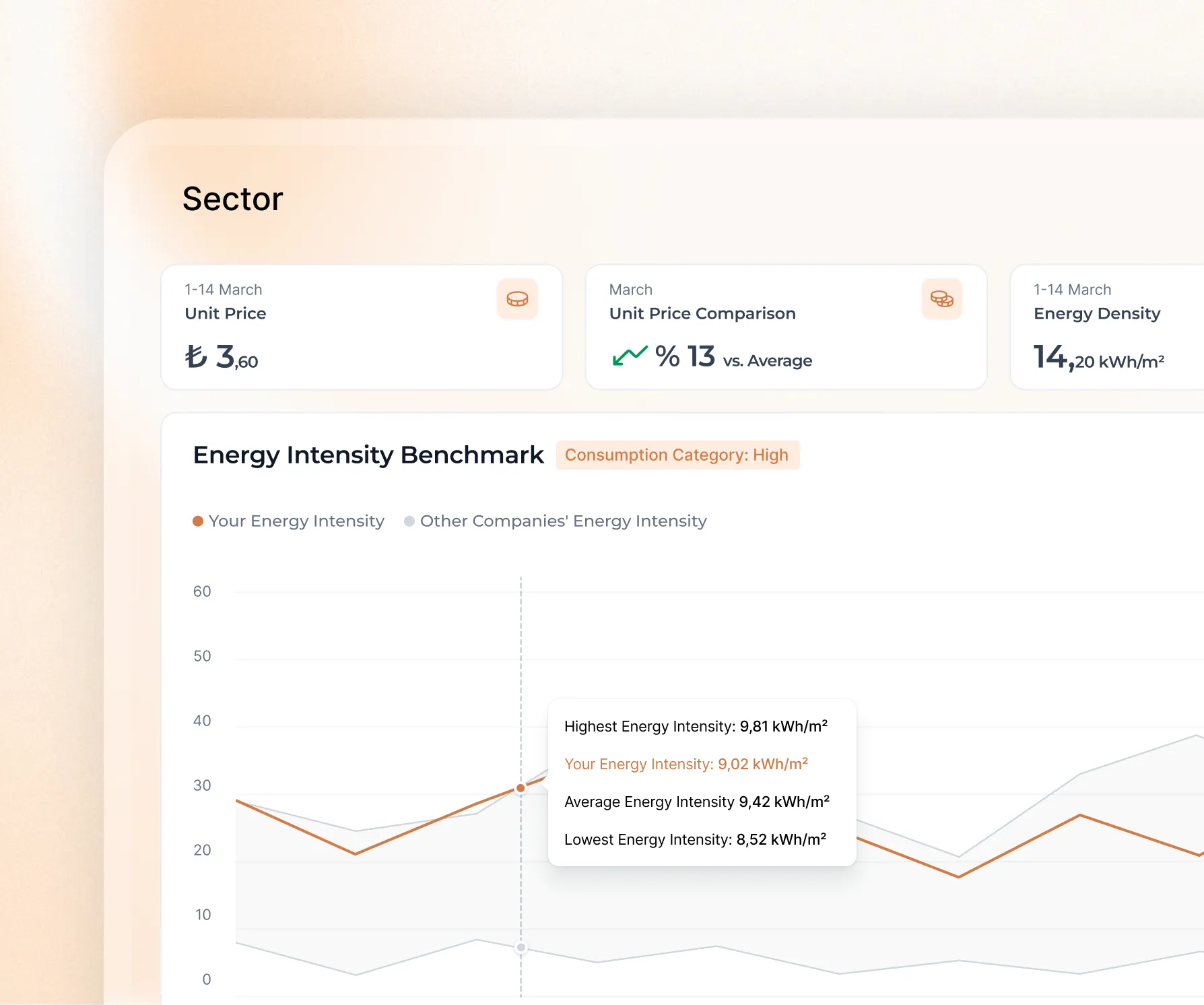 Apollo provides valuable insights by comparing your energy consumption and efficiency with other companies in the industry.
