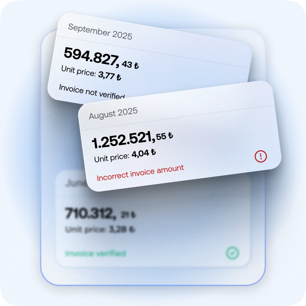 Your historical consumption data and paid invoices are automatically compared to identify overpayments, allowing you to request refunds from your distribution or retail provider.